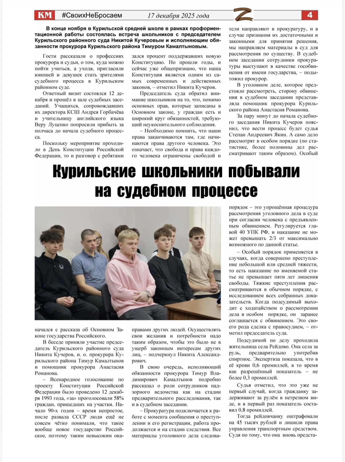 | Публикация мероприятия суда в газете "Красный Маяк" : "Экскурсия школьников 12 декабря 2025 года" | версия для печати |