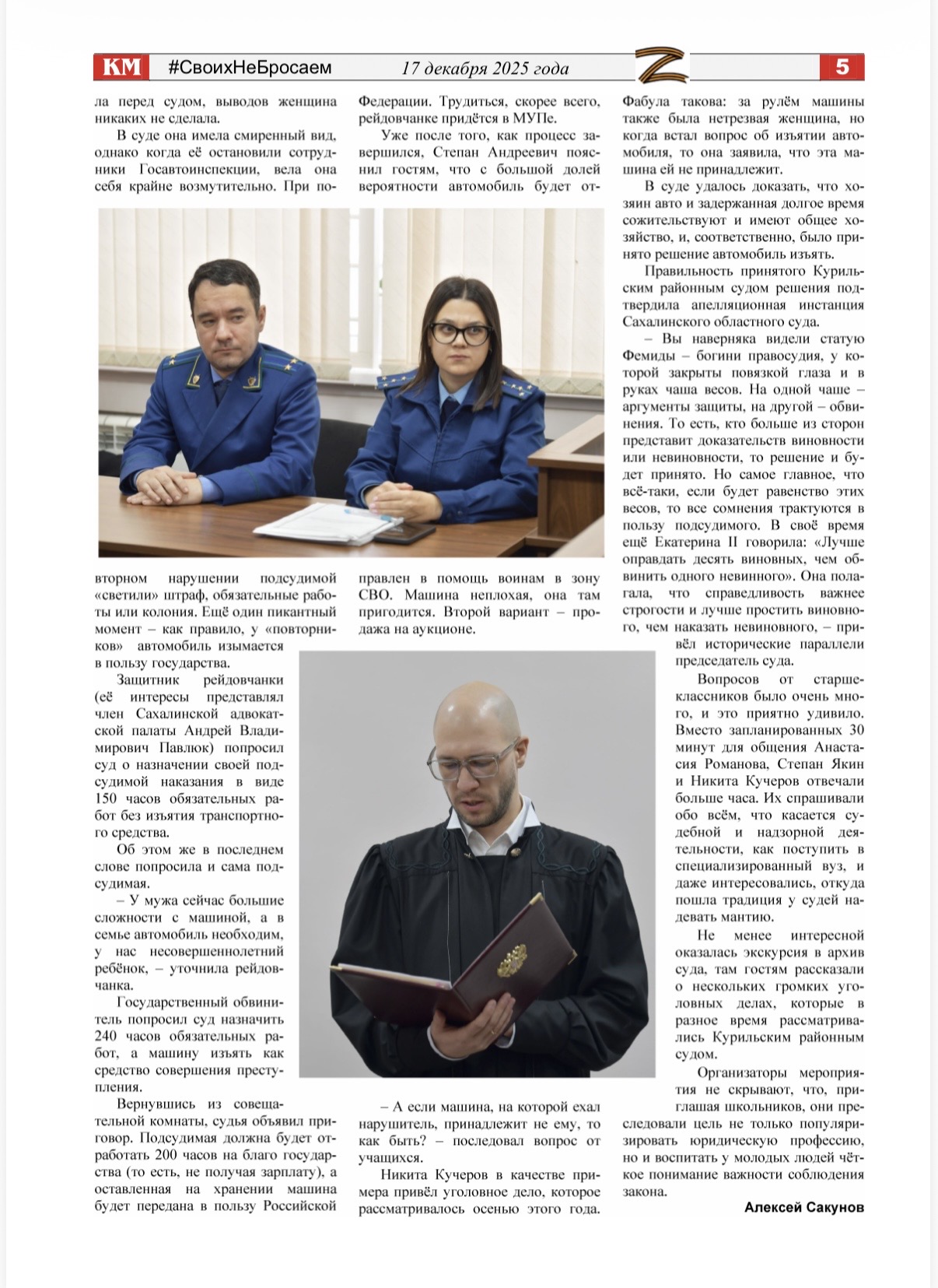 .![]() ![]() ![]() Источник: iturup.news/ (Сайт газеты: Красный Маяк) Пресс-служба Курильского районного суда |